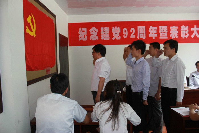 會議由黨委書記孫會昌主持。他首先回顧了新中國成立后中國共產(chǎn)黨對社會主義的探索和實踐,闡述了十八大提出的建設(shè)學(xué)習(xí)型、服務(wù)型、創(chuàng)新型的馬克思主義執(zhí)政黨的要求,全面總結(jié)了一年來企業(yè)黨建工作,并提出了下半年黨建工作的主要任務(wù)和措施。大會表彰了2個先進黨支部、7名優(yōu)秀黨員和2名優(yōu)秀黨務(wù)工作者。4名新黨員面對黨旗莊嚴地進行了宣誓。